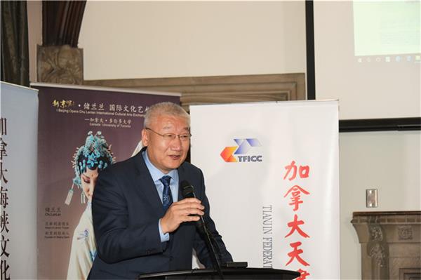 首先由主办方代表加拿大海峡文化交流基金会(筹委会)发起人邢纪元先生和加拿大天津工商联合会荣誉会长邓春利先生代表理事长沈毅先生致欢迎词;中国驻多伦多总领事馆庄耀东副总领事在发言中指出:“京剧是我们的国粹,京剧能够走出国门,在海外弘扬发展,离不开海外的艺术家的宣传,同时也离不开中国的艺术家走出国门的宣传,弘扬中国的传统文化,我们责无旁贷,同时也任重道远。”