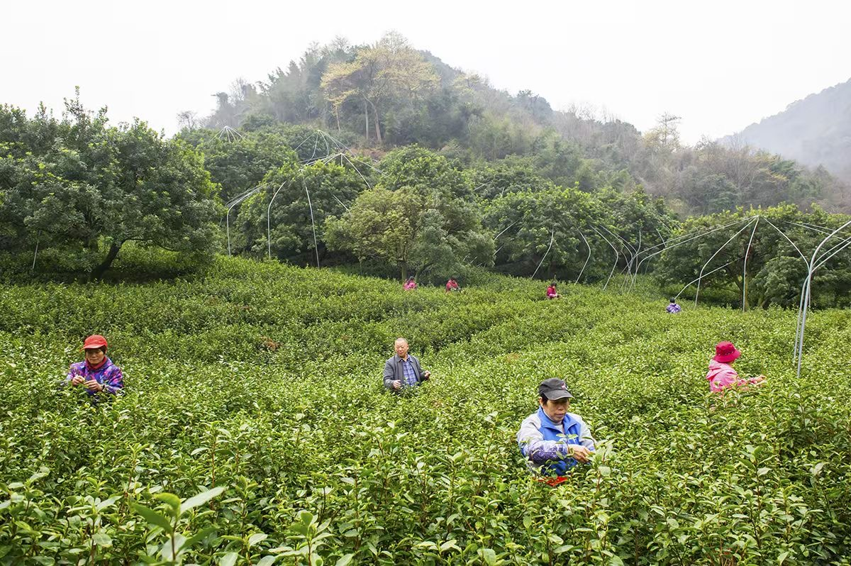 (记者:洪斌 通讯员:罗明) 春分染就一山翠,数字点化千年香。3月20日,四明山余脉海拔150米的黄金山中,有一片省级生态茶园——杨杰园艺场。业主宋杨杰虽已年过六旬,却依旧活跃在山头茶园。他轻抚着初绽的茶芽,身后杨梅树与茶树错落相生,百鸟鸣于山涧间,奏响着春之序曲。