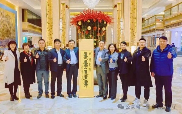 图片资料:2022年11月瞿建国会长向到访辽宁的瞿建国董事长赠送《厚德载物》满汉书法礼品