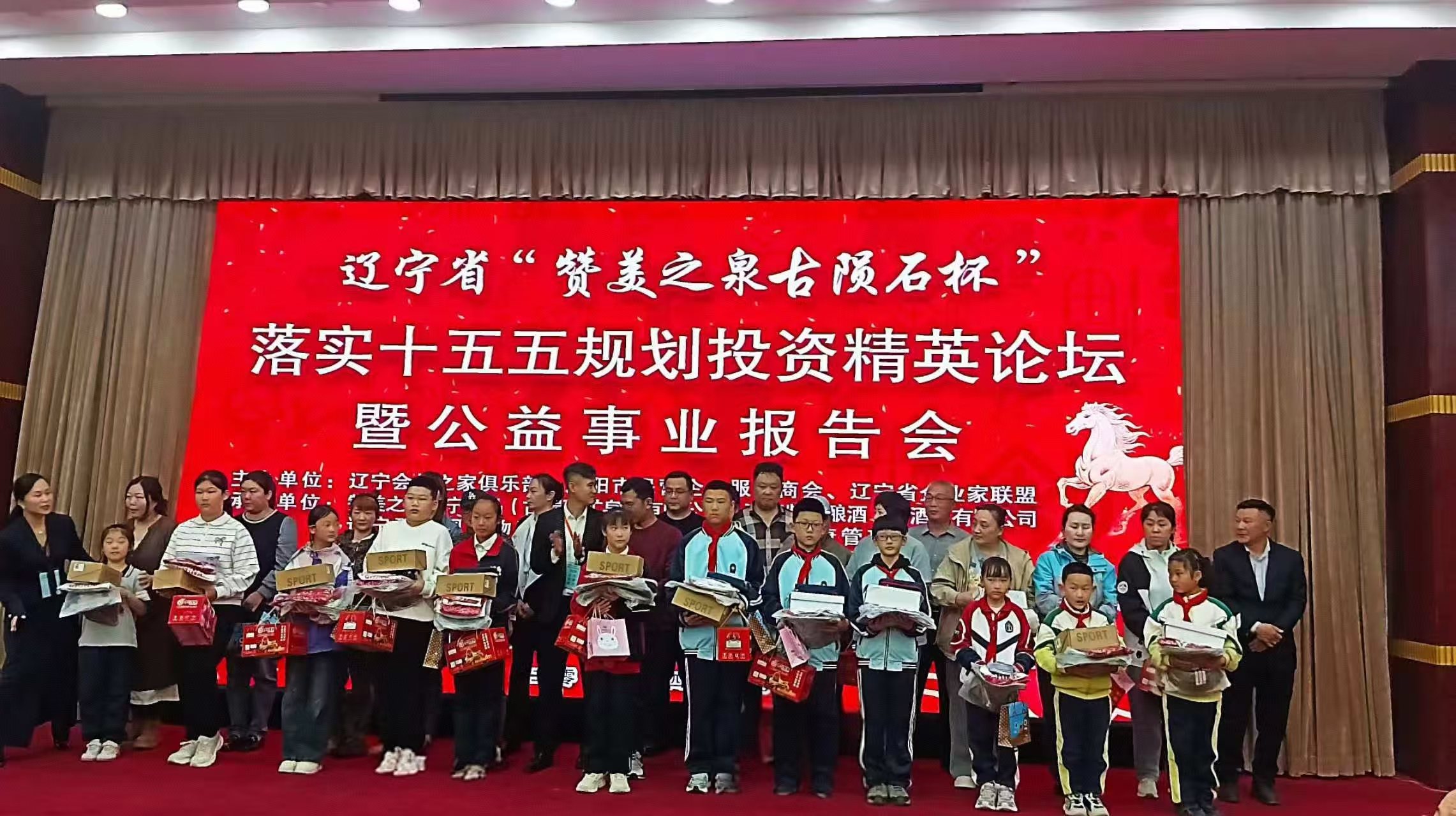 大会还同时举行了公益慈善主题报告会,由辽宁省公益基金会对社会公益慈善事业有贡献的二十位人士,颁发了《公益慈善推广大使》证书,同时,十多位民营企业家及公益赞助商对十多名贫困家庭的学生进行了物质赞助,并提议从小学一直赞助到大学毕业。对上述公益慈善赞助的企业是赞美之泉辽宁饮品(古陨石矿泉水)有限公司、沈阳紫府酿酒(黄酒)有限公司、辽宁臻护视生物科技有限公司、辽宁中脊科技(松茸酒)有限公司、沈阳老闫头食品(黑猪肉)有限公司、沈阳市于洪区相九丞食品联店总店、辽宁车旗网络科技有限公司、沈阳鲜啤三十公里科技有限公司。赞助大会公益慈善事业的诸位赞助商企业家纷纷表示,企业富了不忘国家、不忘赞助社会弱势群体、赞助贫困家庭的学生完成大学学业,企业家有义不容辞的责任。其中,赞助商代表赞美之泉(辽宁)饮品有限公司董事长吴丽鸥动情地表示:赞助困难的学生是时代赋予我们的责任,我们力所能及地对部分困难学生帮助,一直到大学毕业。