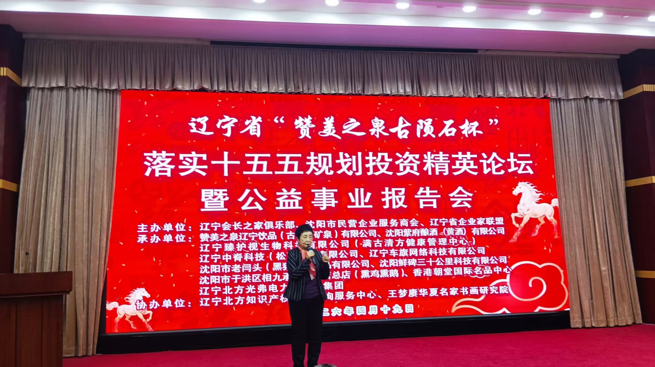 中华新闻社沈阳电(记者 瞿建国)2026年4月19日,在辽宁省人大人民大厦举行了“辽宁赞美之泉古陨石杯”落实国家十五五规划投资精英论坛暨公益事业报告会。出席大会的有原辽宁省政府副省长赵新良、原全国政协常委、辽宁省政协副主席姜笑琴、原辽宁军区司令员南启祥将军等老领导,以及辽宁商协会、企业家、艺术家150余人参加了会议。