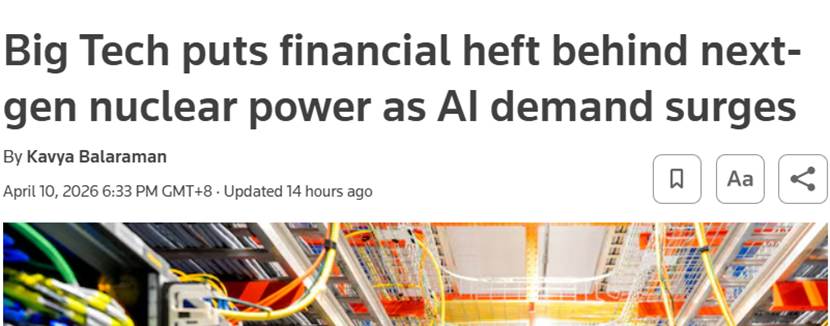 据路透社报道,大型科技公司正在重塑新型核技术的融资格局,旨在为高耗能的人工智能数据中心保障电力供应,而达成的交易既为核能企业提供了资金支持,也为其开辟了更清晰的盈利路径。