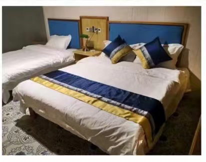 里村山庄住宿精致客房(卧室配有1.8米大床,1.2米床各一张,雅居客厅),精品卫浴、棋牌桌、落地大窗。