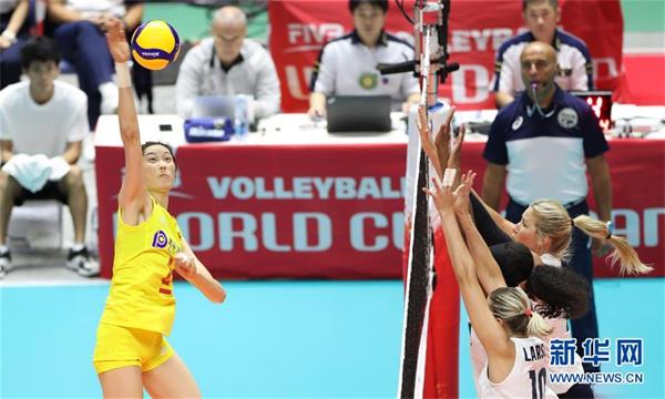 当日,在日本札幌举行的2019年女排世界杯赛第二阶段A组循环赛中,中国队以3比0战胜美国队。