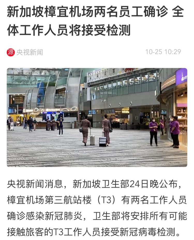 10月24日,新加坡樟宜机场2名工作人员确诊新冠肺炎的消息,曾一度让香港市民担心“旅游气泡”计划会延后。