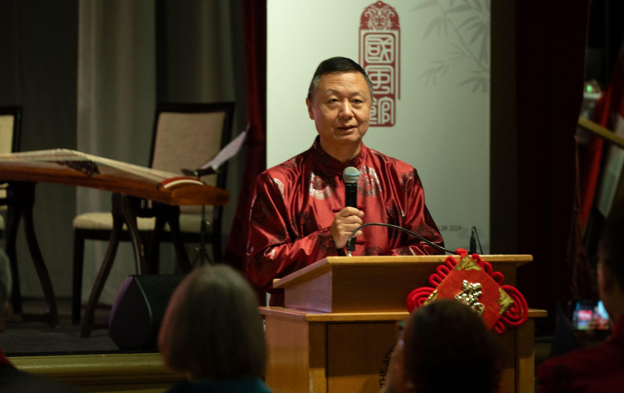 致辞中指出,当前中加人文交流持续深化,人员往来与文化合作不断拓展。多年来,国风馆文化艺术中心积极搭建中加文化艺术对话平台,为促进两国民众相互理解与友好交流发挥了重要作用。最后,致辞祝愿活动成为文明互鉴的重要纽带,让中华优秀传统文化在多伦多持续焕发光彩,并向在场嘉宾致以新春祝福。
