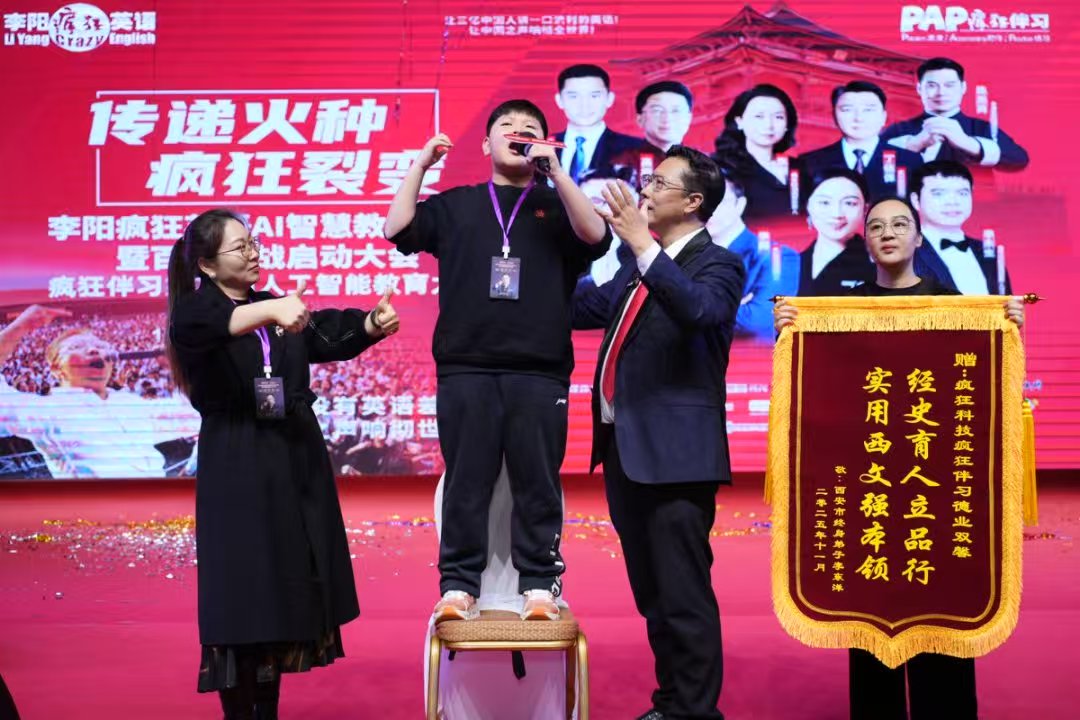 从长安到世界,从传统到智能。本次疯狂英语 AI 智慧教育峰会的举办,不仅是一场教育技术的展示盛会,更是一次立足西安文化根基、面向全球未来的教育文化总动员。李阳老师带着 38 年的教育积淀回归发源地,以 AI 为钥解锁教育新可能,既延续了 “让三亿中国人讲一口流利英语” 的初心,更深化了 “用英语讲好中国故事” 的时代命题。相信这场 “从古都出发的智慧裂变”,终将汇聚成推动中国英语教育创新与中华文化国际传播的燎原之势,让疯狂英语走遍全中国,让疯狂中文走向全世界!