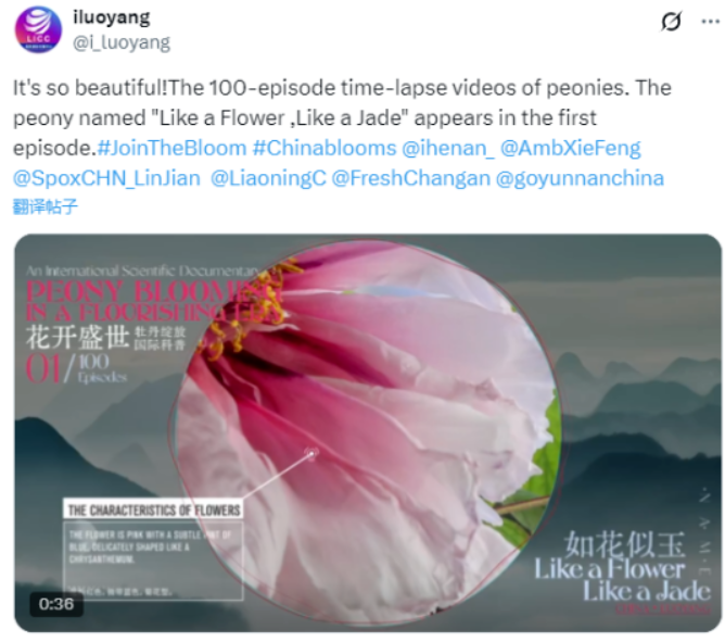 当#ChinaBlooms的花香穿越山海,这场始于春分的文明对话,正在重构世界对中国的认知维度。从一朵花里看见中国,于万紫千红中读懂东方。当【华夏春笺】的芬芳飘向世界,那些关于色彩、生命与传承的故事,正在重构世界对中国的想象。