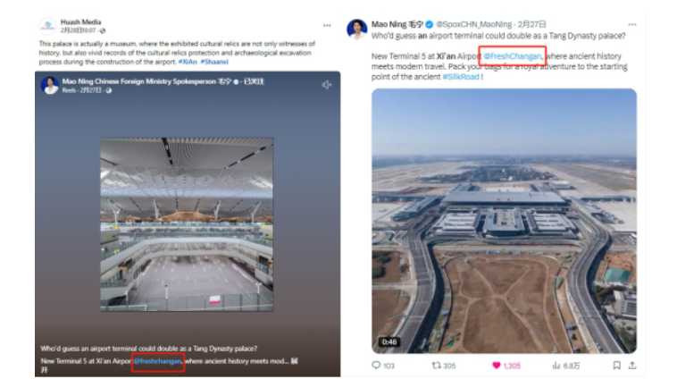 外交官毛宁的社交账号向来以“大国议题”著称,2月27日却为一栋建筑破例。她在海外平台连发数帖,向全球旅行者推荐西安咸阳国际机场T5航站楼——这座被称作“唐朝宫殿”的现代交通枢纽,24小时内登上12国社交平台热搜榜。