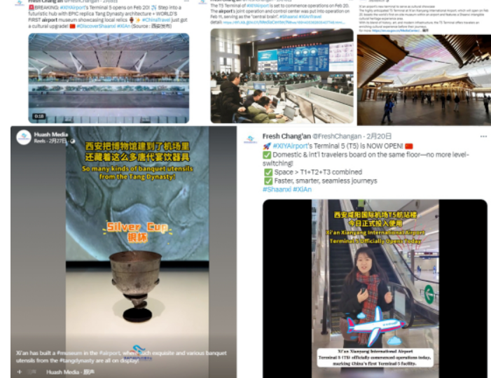 西安咸阳国际机场T5航站楼博物馆开放相关短视频由华商国际传播中心拍摄制作,数据显示,该帖文在X平台单日互动量超23万次,远超美国丹佛机场“帐篷屋顶”、迪拜机场“黄金长廊”等话题热度。这座航站楼内,考古队曾从扩建工地抢救出4093座古墓、2.2万件文物,如今它们与斗拱飞檐的仿唐建筑共生,让国际舆论惊呼:“中国机场里藏着半部亚洲史。”