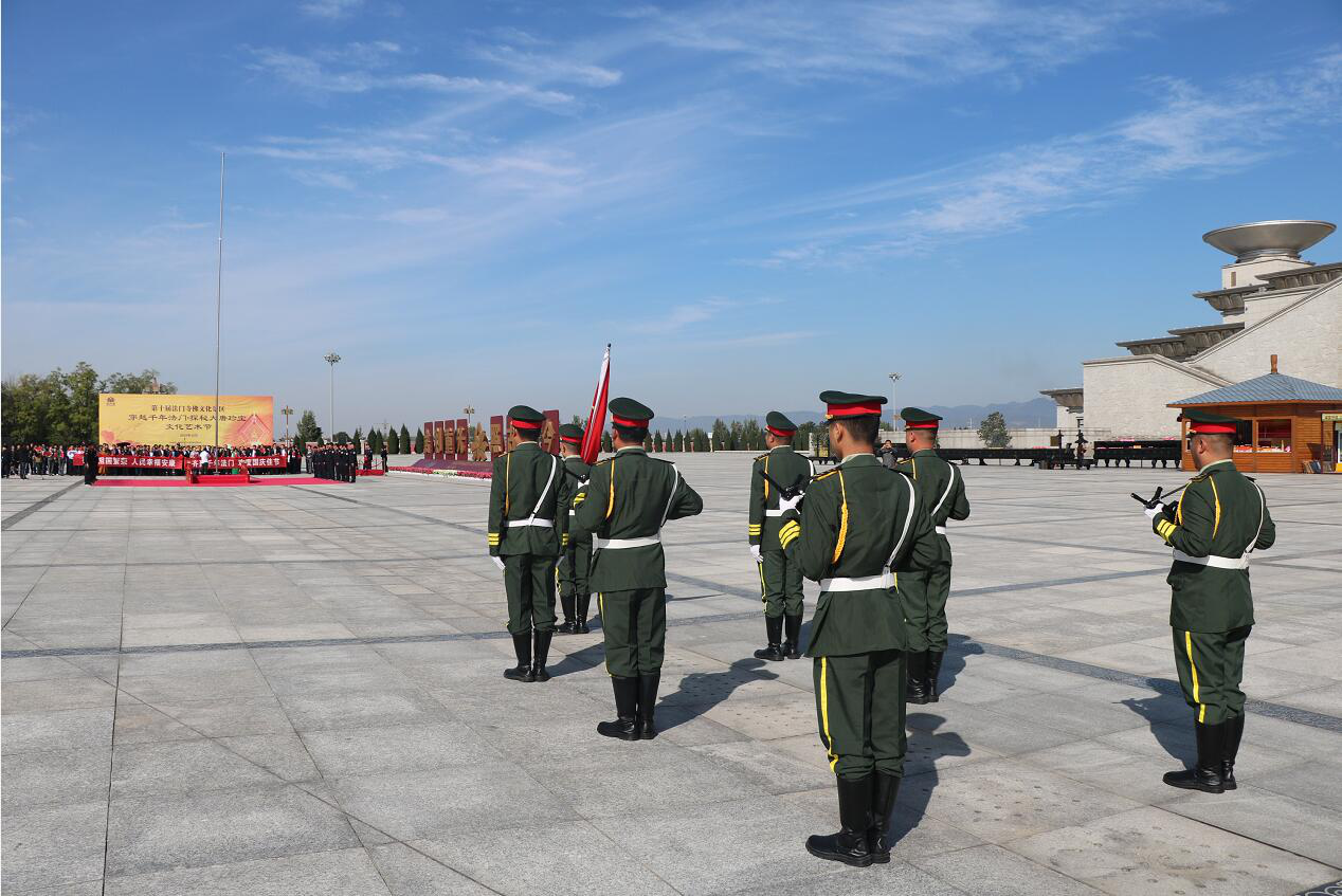 法门寺博物馆联合法门寺景区举行国庆升旗仪式等活动