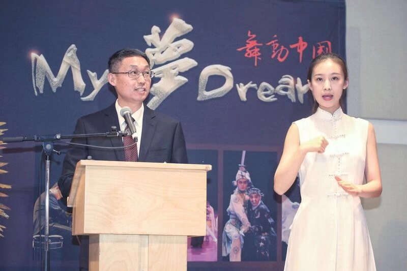 中华新闻社多伦多11月14日电(马 淼)当地时间11月8日晚,由中国对外演出集团公司“舞动中国”品牌推动、加拿大加中文化发展协会承办的中国残疾人艺术团大型综合演出《我的梦》在加拿大多伦多艺术中心震撼上演。这是中国残疾人艺术团继2012年访演后再次亮相多伦多。中国驻多伦多领事馆韩涛总领事、副总领事庄耀东,加中文化发展协会主席高如东,中国对外演出集团公司总经理高云杰以及加拿大三级政府的各级议员参加了演出前的见面酒会,同时还有众多的各国驻多伦多的外交使节包括俄国,印尼,柬埔寨等到场祝贺并和主要演员合影留念,一同观看了当晚的演出。