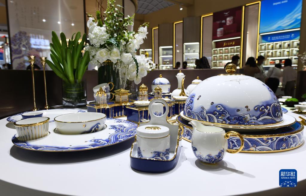 参展商深圳国瓷永丰源股份有限公司展出的瓷质餐具(7月26日摄)。新华社记者 杨冠宇 摄