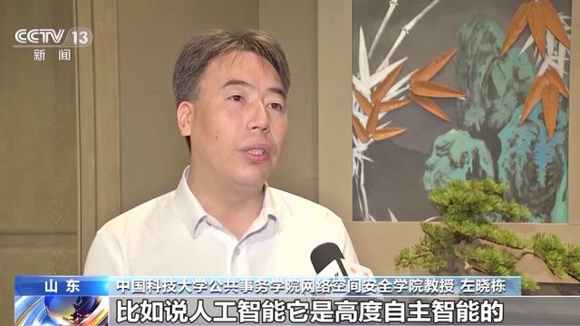 中国科技大学公共事务学院网络空间安全学院教授 左晓栋:人工智能的风险和传统的风险相比,它有一些独特的特点,比如说人工智能它是高度的自主智能的,它是要极大依赖数据的,而且这里面还有算法黑箱的问题,还有算法不可解释的问题,都使得人工智能的风险很难预测,而且大量的是未知事物。
