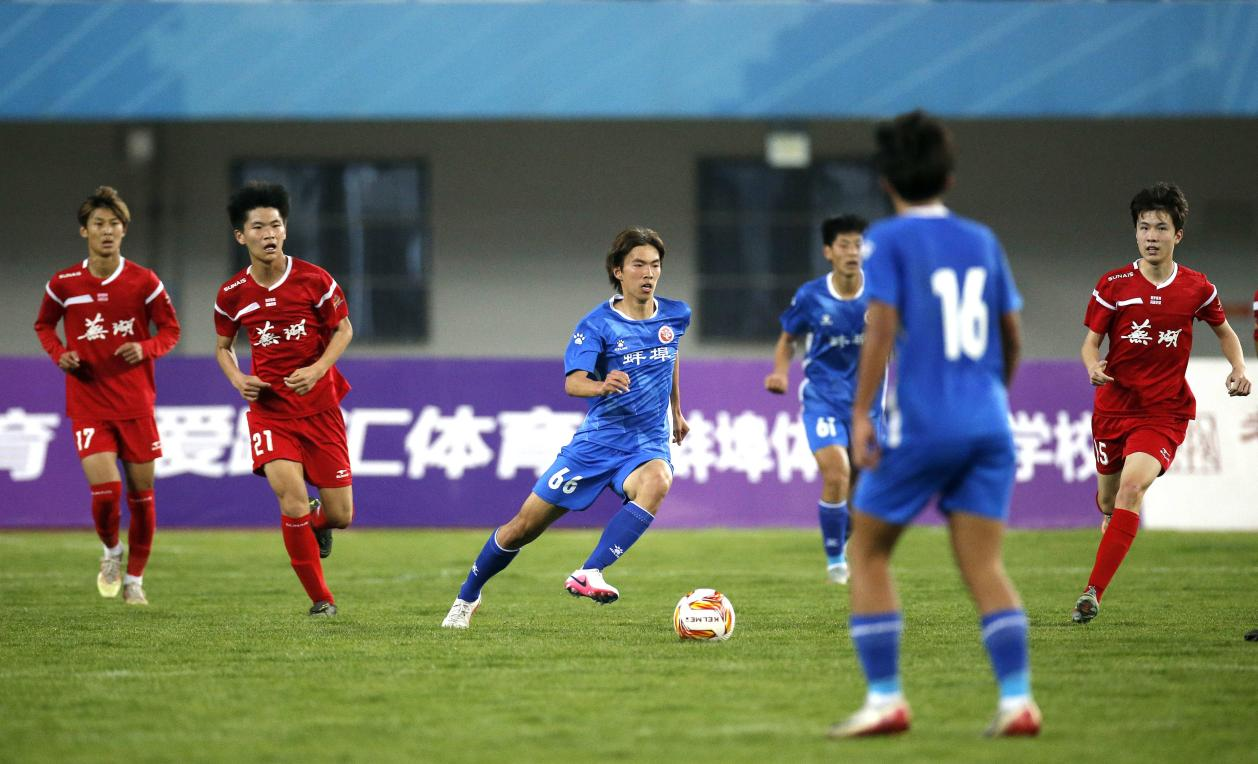 上半场第25分钟,蚌埠队抓住前场进攻机会,由右前锋队员16号赵天硕果断射门得分,通过激烈角逐,最终本场比赛定格在2:1,蚌埠队以两回合总比分6:1战胜对手,成功晋级决赛。